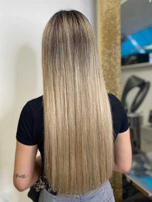 Unsere Echthaare sind in derselben Wuchsrichtung veredelt (Remy Haare), und gehören zu den qualitativ hochwertigsten Haaren auf dem Weltmarkt. Dadurch werden sie weder verhedern noch verknoten. Die Schuppenschicht des Haares strahlt in einem top Zustand und lässt das Haar unverkennbar glänzen. Garantierte Vitalität und langanhaltende Geschmeidigkeit.