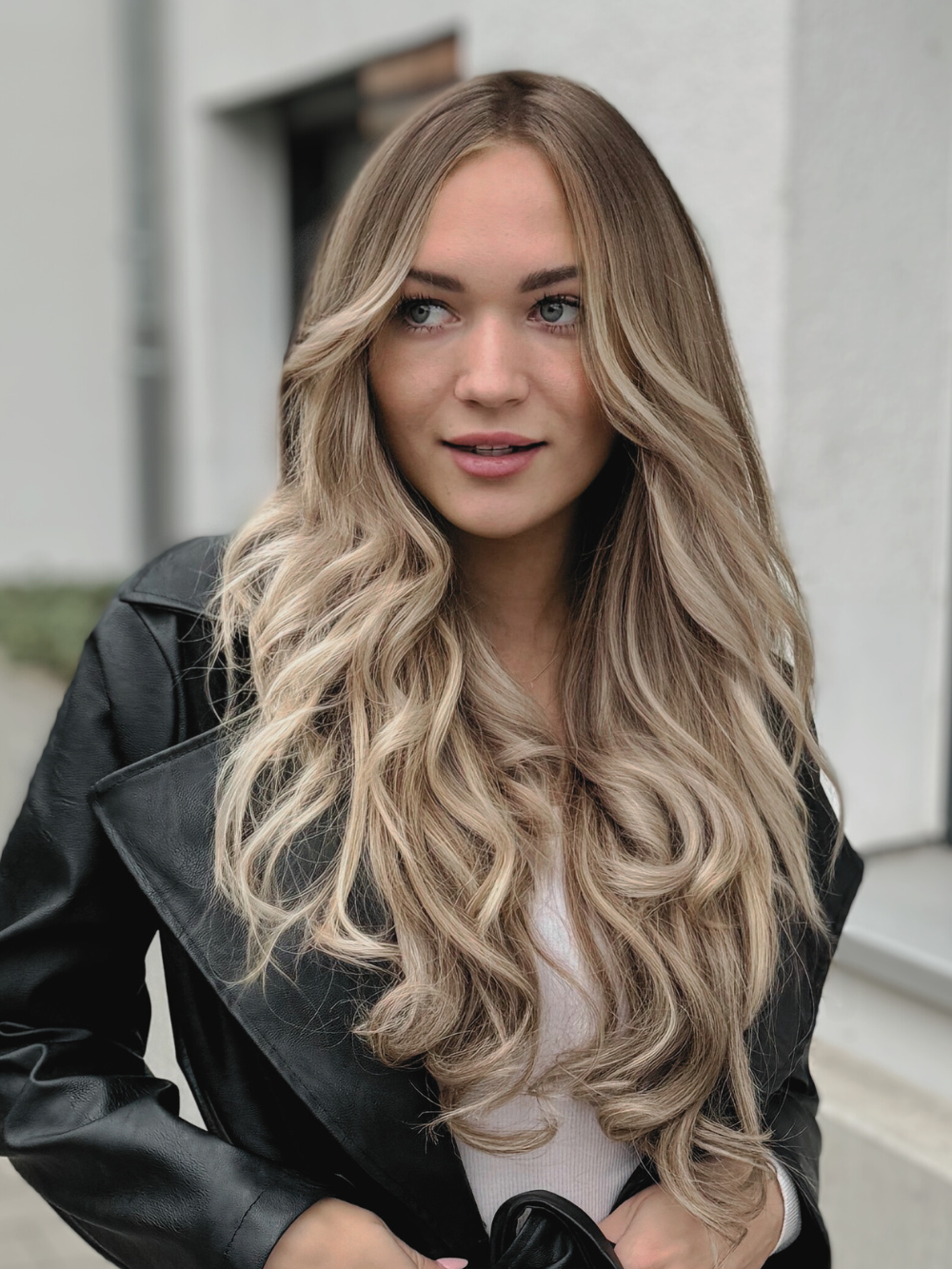 Clip in Extensions - luxury Qualität - Big Volume 9-teilig 55cm - B10/DB2 balayage hellbraun asch & hellgoldblond